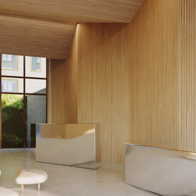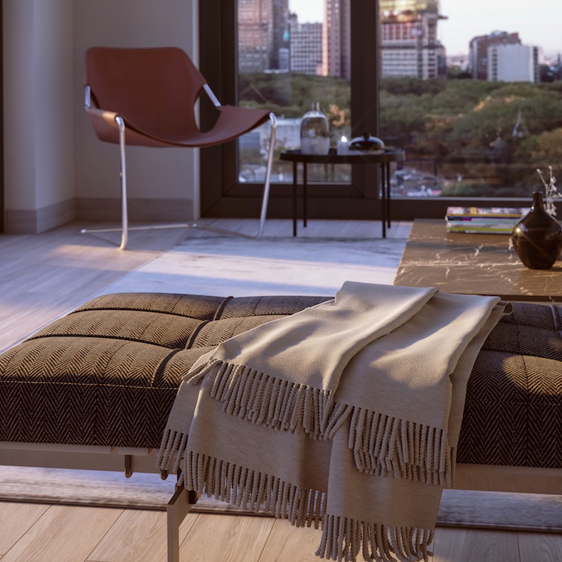 Look inside the stunning concrete sculpture that is 98 Front and find thoughtful details throughout that invoke a sense of serenity and community. Start at home: unlock your apartment at 98 Front and enter an oasis of minimalist design that maximizes the pleasures of living. Natural blonde wood accents Italian cabinetry to create clean lines from the bathroom to the bedroom, while Corian countertops and backsplashes continue to elevate aesthetics in the kitchen. Outfitted with top-of-the-line Bosch appliances, 98 Front’s luxury Brooklyn condos are created to streamline your life. Large windows, high ceilings, and superior finishing touches add to the beauty of the residences at 98 Front.